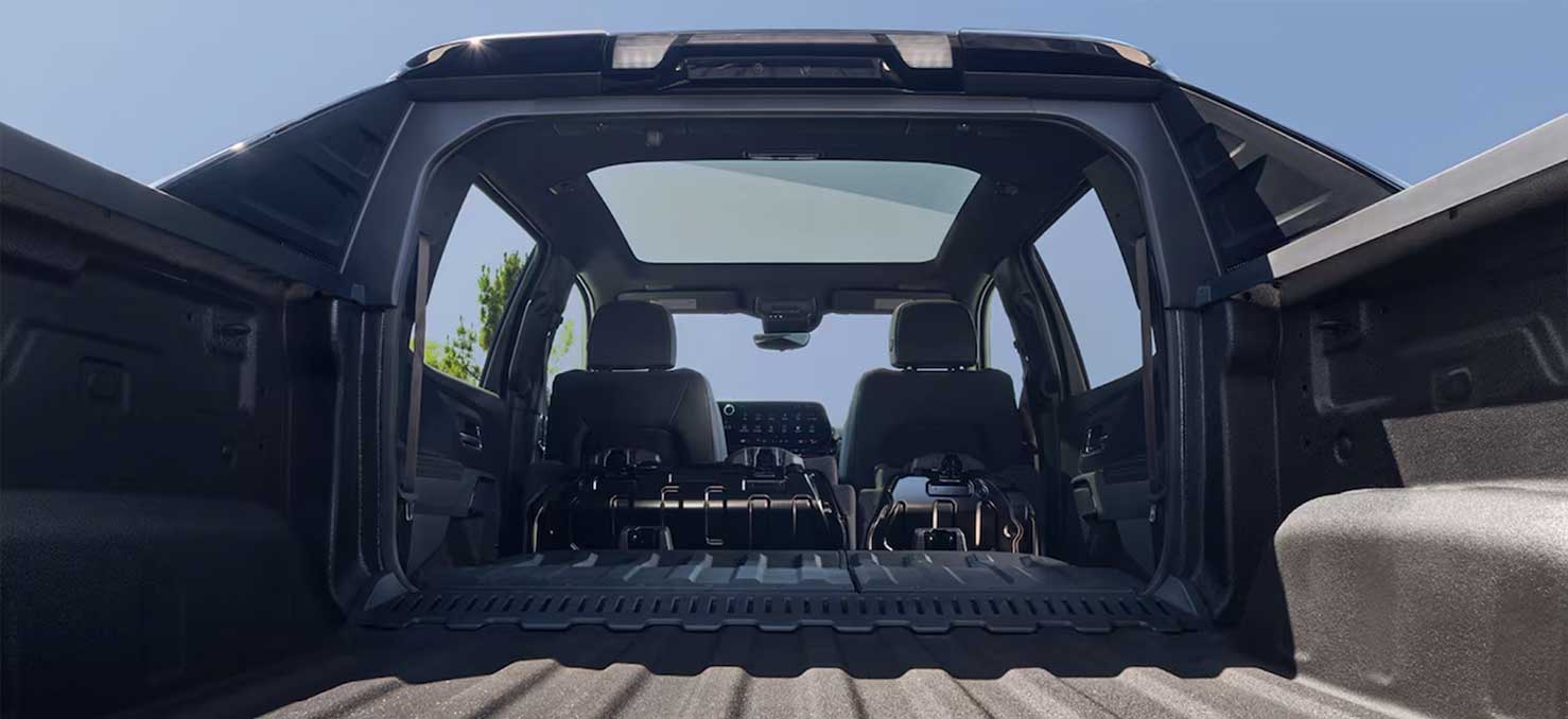 The innovative four-wheel steer system allows all four wheels to work in tandem, creating a smaller turning radius for parallel parking and narrow turns. Other features include eTrunk underhood storage, modern lighting, and the versatile Multi-Flex Midgate® with pass-through, offering flexible configurations to extend the load floor from the truck bed into the cab. Use a key fob, a switch inside, or a button on the outside to open the primary gate.
