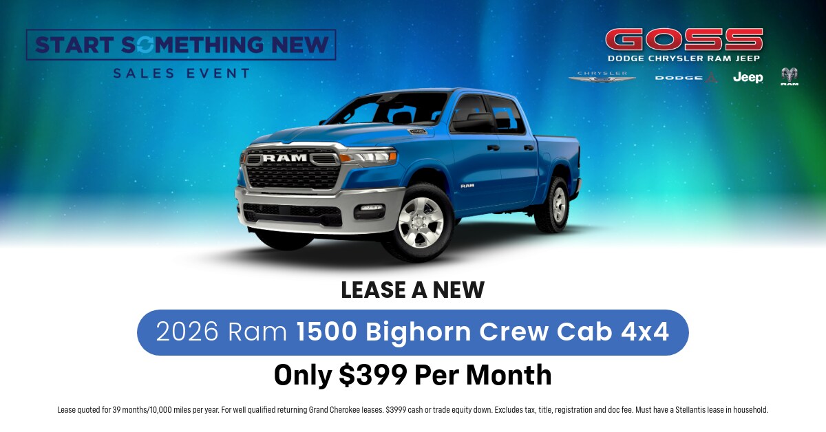 If you want an even better deal on a new vehicle, take advantage of our rotating specials now. At Goss Cars' family of dealerships, we're always looking to help you cut costs so getting your dream car can become a reality. Whether you're leasing or buying outright, you shouldn't have to go home empty-handed because your ideal model was just out of your budget. Make sure to browse through our special offers every once in a while to see what we have in store. Whether you're looking for a truck, sedan, or SUV, you can expect to find a great vehicle at a phenomenal rate.