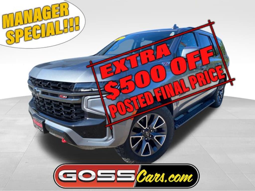 2022 Chevrolet Tahoe Z71, 4WD, 10-Speed Automatic with Overdrive, EcoTec3 5.3L V8, Satin Steel Metallic, Portfolio 7 Year/100,000 Mile Warranty Inspection, CLEAN CARFAX, LEATHER SEATS, NAVIGATION, HEATED SEATS, BLIND SPOT DETECTION, SUN ROOF, 4WD, Gideon/Very Dark Atmosphere Leather, 2-Speed Active Electronic AutoTrac Transfer Case, 2nd Row Pwr Release 60/40 Split-Folding Bench Seat, 3rd Row 60/40 Power-Folding Split-Bench Seat, ABS brakes, Advanced Trailering Package, Air Ride Adaptive Suspension, AM/FM radio: SiriusXM with 360L, Apple CarPlay/Android Auto, Black Tubular Assist Steps, Bose 9-Speaker Stereo Audio System Feature, Driver Alert Package, Dual-Pane Power Panoramic Sunroof, Electronic Limited-Slip Differential, Electronic Stability Control, Enhanced Driver Information Center, Extra Capacity Cooling System, Front dual zone A/C, Hands-Free Rear Power Programmable Liftgate, Heated front seats, Heated Steering Wheel, Hill Descent Control, Lane Change Alert w/Side Blind Zone Alert, Leather-Appointed Seat Trim, LED Daytime Running Lamps, Luxury Package, Max Trailering Package, Off-Road Capability Package, Power Liftgate, Power passenger seat, Power Tilt & Telescopic Steering Column, Power windows, Preferred Equipment Group 2Z7, Rear air conditioning, Rear Cross Traffic Alert, Rear Pedestrian Alert, Remote keyless entry, Remote Start, Wheels: 20" x 9" Machined Aluminum, Z71 Off-Road Package.