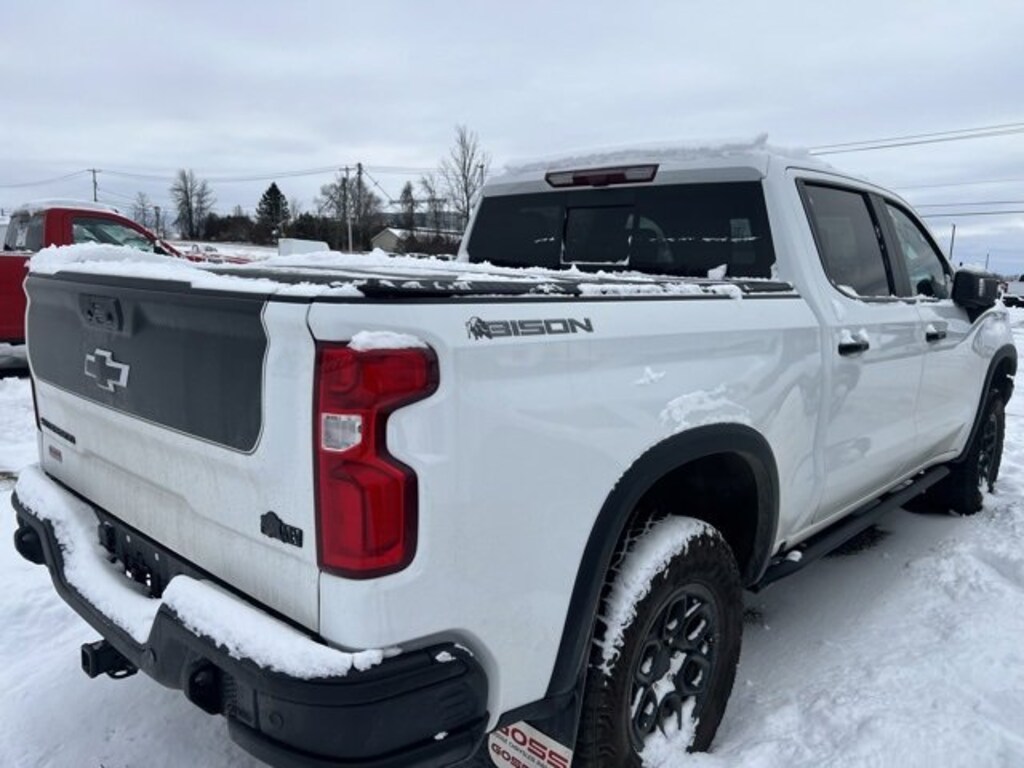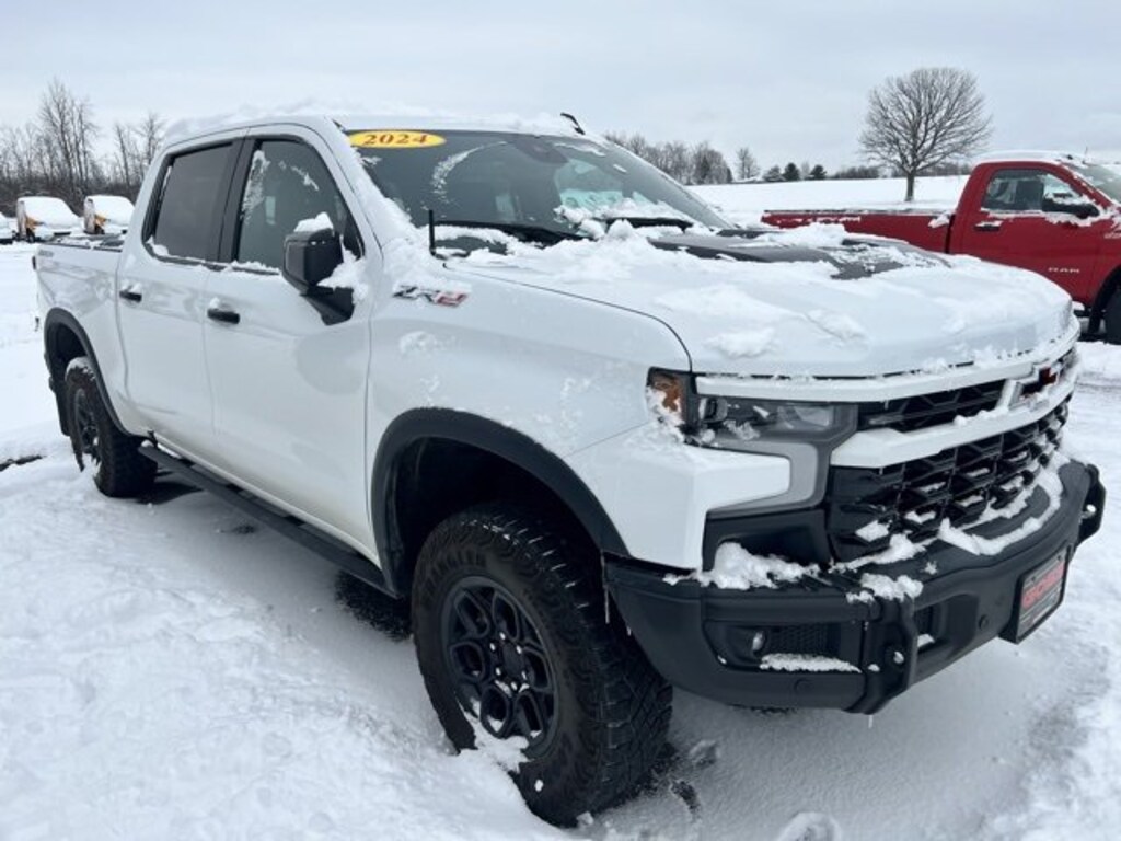 2024 Chevrolet Silverado 1500 ZR2 Crew Cab, 4WD, 10-Speed Automatic, EcoTec3 6.2L V8, Summit White, Jet Black/Graystone Leather, 12.3 Multicolor Reconfigurable Digital Display, 120-Volt Interior Power Outlet, 15 Diagonal Multicolor Head-Up Display, ABS brakes, Adaptive Cruise Control, AEV Front Bumper, AEV Fuel Tank Skid Plate, AEV Rear Bumper, All-Weather AEV Floor Liners (LPO), All-Weather Floor Liner (LPO), AM/FM radio: SiriusXM with 360L, Auto-Dimming Inside Rear-View Mirror, Bed View Camera, Bluetooth® For Phone, Chevytec Spray-On Black Bedliner, Deep-Tinted Glass, Driver Memory, Dual Exhaust, Electric Rear-Window Defogger, Electronic Stability Control, EZ Lift Power Lock & Release Tailgate, Following Distance Indicator, Forward Collision Alert, Front dual zone A/C, Front LED Fog Lamps, Front Pedestrian Braking, Front Rain-Sensing Wipers, HD Surround Vision, Heated Driver & Front Outboard Passenger Seats, Heated rear seats, Heated Steering Wheel, Heavy-Duty Air Filter, High Gloss Black Mirror Caps, Hill Descent Control, Hitch Guidance w/Hitch View, In-Vehicle Trailering System App, Integrated Trailer Brake Controller, Keyless Open & Start, LED Cargo Area Lighting, Multi-Flex Tailgate, OnStar & Chevrolet Connected Services Capable, Outside Heated Power-Adjustable Mirrors, Perforated Leather Seat Trim, Performance Red Recovery Hooks, Perimeter Lighting, Power passenger seat, Power Sliding Rear Window w/Rear Defogger, Power Tilt & Telescoping Steering Column, Power windows, Preferred Equipment Group 3LT, Premium Bose 7-Speaker Sound System, Rear Camera Mirror, Rear Cross Traffic Braking, Rear Park Assist, Rear Pedestrian Alert, Rear Wheelhouse Liners, Remote keyless entry, Remote Vehicle Starter System, Rocker Protector (LPO), Safety Alert Seat, Steering Wheel Audio Controls, Technology Package, Trailer Camera Provisions, Trailer Side Blind Zone Alert, Trailering Package, Ultrasonic Front & Rear Park Assist, Universal Home Remote, Up-Level Rear Seat w/Storage Package, Ventilated Driver & Front Passenger Seats, Wheels: 18 x 8.5 Aluminum AEV, Wi-Fi Hot Spot Capable, ZR2 Bison Edition, ZR2 Suspension Package. CARFAX One-Owner. Clean CARFAX.CarBravo Certified Any approved vehicle that satisfies these two criteria is eligible for the CarBravo Certified: Vehicle = 10 model years old and: Vehicle = 100,000 miles at time of sale Eligible CarBravo-Certified vehicles will receive a 6-month/6,000-mile (whichever comes first) limited bumper-to-bumper warranty. If the vehicle has bumper-to-bumper coverage remaining under the GM New Vehicle Limited Warranty, then the CarBravo limited bumper-to-bumper warranty coverage will go into effective upon expiration of the original New Vehicle Limited Warranty. If the vehicleâs bumper-to-bumper coverage under the GM New Vehicle Limited Warranty has already expired by time or mileage as of the date of the CarBravo transaction, then the CarBravo limited bumper-to-bumper warranty becomes effective on the contract date of the CarBravo sale. BravoBudget Certified Any approved vehicle that does not satisfy the eligibility criteria for the CarBravo Certified, but that satisfies the following two criteria, is eligible for the BravoBudget Certified: Vehicles less than 15 model years old; and: Vehicles with fewer than 150,000 miles at time of sale Eligible BravoBudget-Certified vehicles will receive a 30-day/1,000-mile (whichever comes first) limited powertrain warranty. Recent Arrival!Certification Program Details: Car Bravo Certified