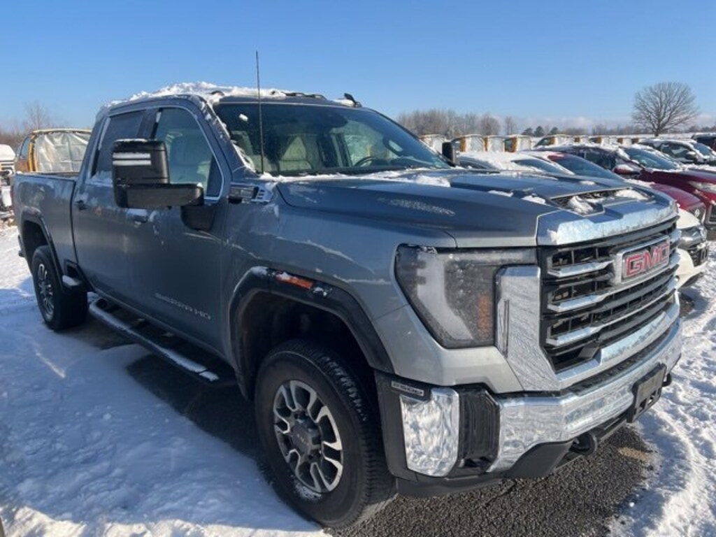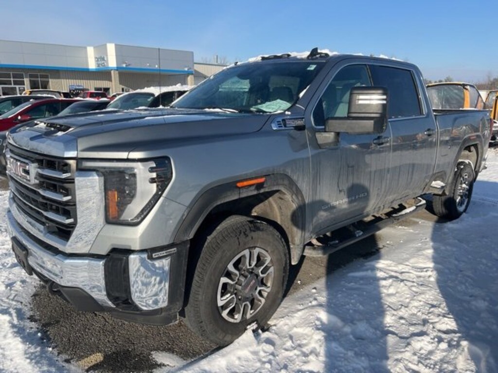 2024 GMC Sierra 2500HD SLE Crew Cab, 4WD, 10-Speed Automatic, 6.6L V8, Sterling Metallic, Dark Walnut/Slate Cloth, 10-Way Power Driver Seat Adjuster w/Lumbar, 120-Volt Instrument Panel Power Outlet, 18 Machined Aluminum Wheels, 2 Charge-Only Rear USB Ports, 2 Charge/Data USB Ports, 2-Speed Electronic Shift Transfer Case, 220-Amp Alternator, 4-Way Manual Driver Seat Adjuster, A/C w/Dual-Zone Automatic Climate Control, ABS brakes, All-Weather Floor Liners (LPO), AM/FM radio: SiriusXM with 360L, Apple CarPlay/Android Auto, Chrome Surround Grille w/Chrome Insert Bars, Deep-Tinted Glass, Electric Rear-Window Defogger, Electronic Stability Control, Following Distance Indicator, Forward Collision Alert, GMC Connected Access Capable, Heated Driver & Front Outboard Passenger Seats, Heated Package, Heated Steering Wheel, Integrated Trailer Brake Controller, Keyless Open & Start, Lane Departure Warning System, LED Fog Lamps, LED Smoked Amber Roof Marker Lamps, OnStar & GMC Connected Services Capable, Pickup Box, Power windows, Preferred Equipment Group 3SA, Push Button Start, Remote keyless entry, Remote Start Package, Remote Vehicle Starter System, SLE Convenience Package, SLE Value Package, Snow Plow Prep/Camper Package, Speed control, Spray-On Bedliner, Steering Wheel Audio Controls, Wireless Phone Projection, X31 Off-Road & Protection Package, X31 Off-Road Package. CARFAX One-Owner. Clean CARFAX.CarBravo Certified Any approved vehicle that satisfies these two criteria is eligible for the CarBravo Certified: Vehicle = 10 model years old and: Vehicle = 100,000 miles at time of sale Eligible CarBravo-Certified vehicles will receive a 6-month/6,000-mile (whichever comes first) limited bumper-to-bumper warranty. If the vehicle has bumper-to-bumper coverage remaining under the GM New Vehicle Limited Warranty, then the CarBravo limited bumper-to-bumper warranty coverage will go into effective upon expiration of the original New Vehicle Limited Warranty. If the vehicleâs bumper-to-bumper coverage under the GM New Vehicle Limited Warranty has already expired by time or mileage as of the date of the CarBravo transaction, then the CarBravo limited bumper-to-bumper warranty becomes effective on the contract date of the CarBravo sale. BravoBudget Certified Any approved vehicle that does not satisfy the eligibility criteria for the CarBravo Certified, but that satisfies the following two criteria, is eligible for the BravoBudget Certified: Vehicles less than 15 model years old; and: Vehicles with fewer than 150,000 miles at time of sale Eligible BravoBudget-Certified vehicles will receive a 30-day/1,000-mile (whichever comes first) limited powertrain warranty. Recent Arrival!Certification Program Details: Car Bravo Certified