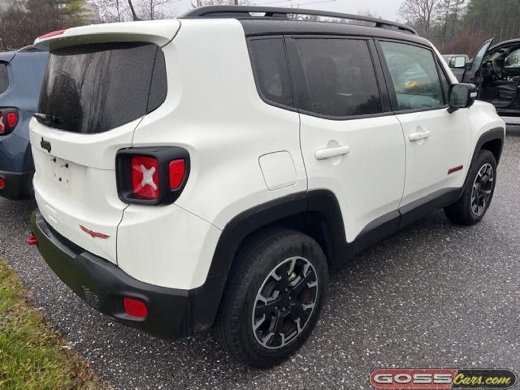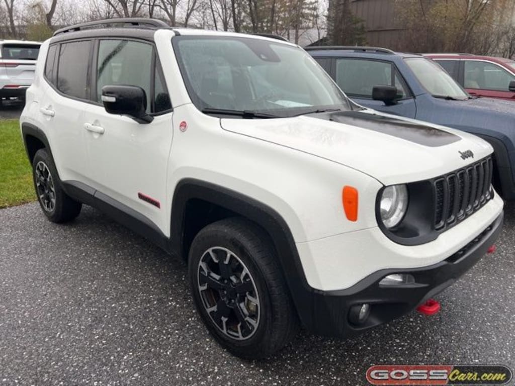 2023 Jeep Renegade Trailhawk, 4WD, 9-Speed 948TE Automatic, 1.3L I4, Alpine White Clearcoat, Chrysler CPOV 7 Year/100,000 Mile Warranty, ONE OWNER, CLEAN CARFAX, NAVIGATION, BLIND SPOT DETECTION, ABS brakes, AM/FM radio: SiriusXM, Apple CarPlay/Android Auto, Electronic Stability Control, Front dual zone A/C, Heated door mirrors, Navigation System, ParkView Rear Back-Up Camera, Power windows, Premium Cloth Low-Back Bucket Seats, Radio: Uconnect 4C Nav w/8.4" Display, Remote keyless entry, Roof rack: rails only, Speed control, Steering wheel mounted audio controls, Variably intermittent wipers, Wheels: 17" x 7" Glossy Black Diamond Cut.