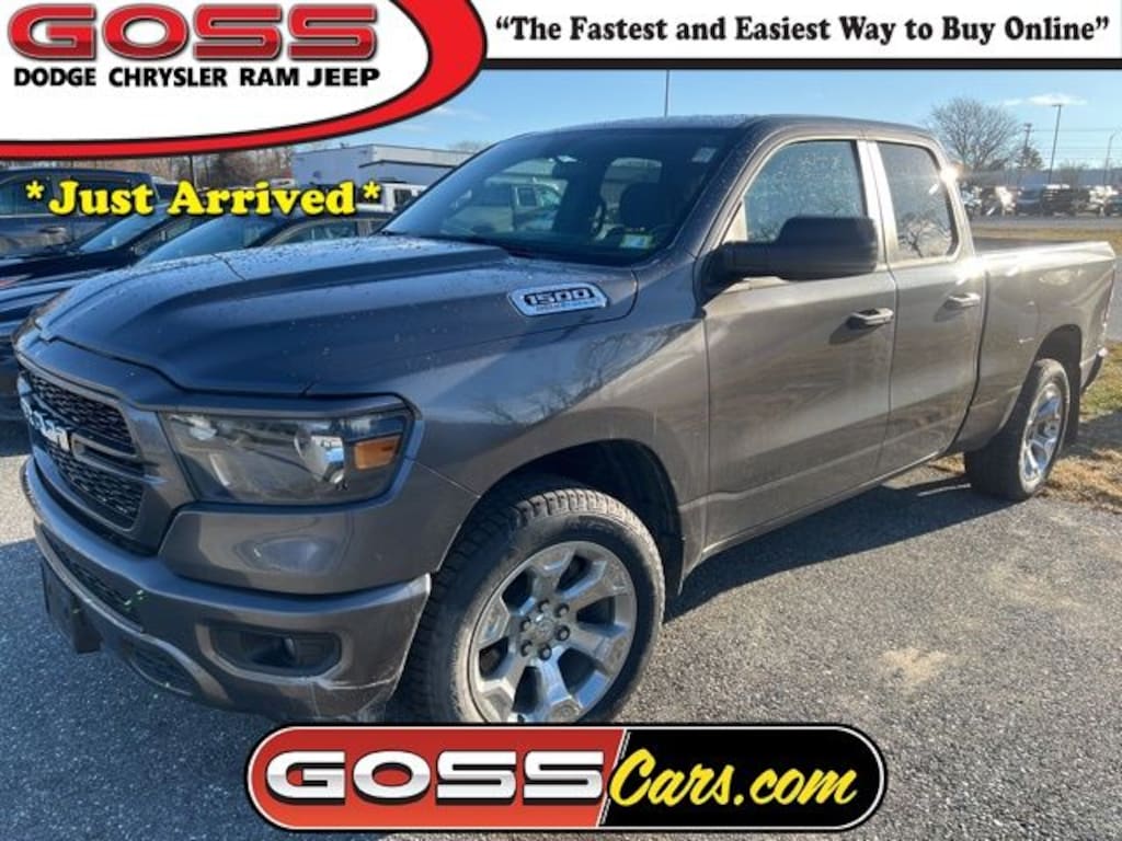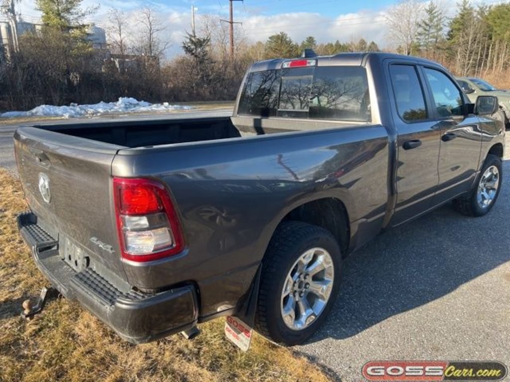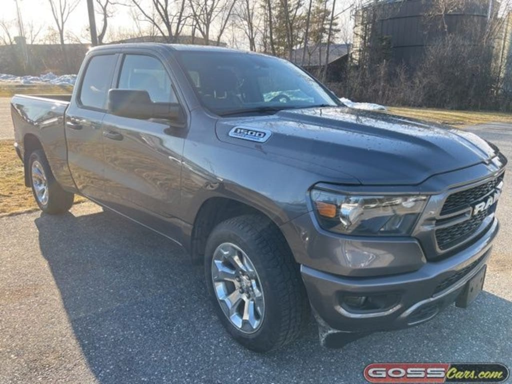 2023 Ram 1500 Tradesman Quad Cab, 4WD, 8-Speed Automatic, HEMI 5.7L V8 Multi Displacement VVT eTorque, Granite Crystal Metallic Clearcoat, Chrysler CPOV 7 Year/100,000 Mile Warranty, ONE OWNER, CLEAN CARFAX, ABS brakes, Air Conditioning, Black Interior Accents, Body Color Front Bumper, Body Color Rear Bumper w/Step Pads, Class IV Receiver Hitch, Cloth 40/20/40 Bench Seat, Electronic Stability Control, Front Fog Lamps, Grille Surround 1 Body Color Texture 1 Black, ParkView Rear Back-Up Camera, Power windows, Radio: Uconnect 3 w/5" Display, RAM Grille Badge - Chrome, Rear Power Sliding Window, Remote keyless entry, SiriusXM Satellite Radio, Speed control, Sport Appearance Package, Tradesman Level 1 Equipment Group, Variably intermittent wipers, Wheels: 20" x 9" Aluminum Chrome Clad.