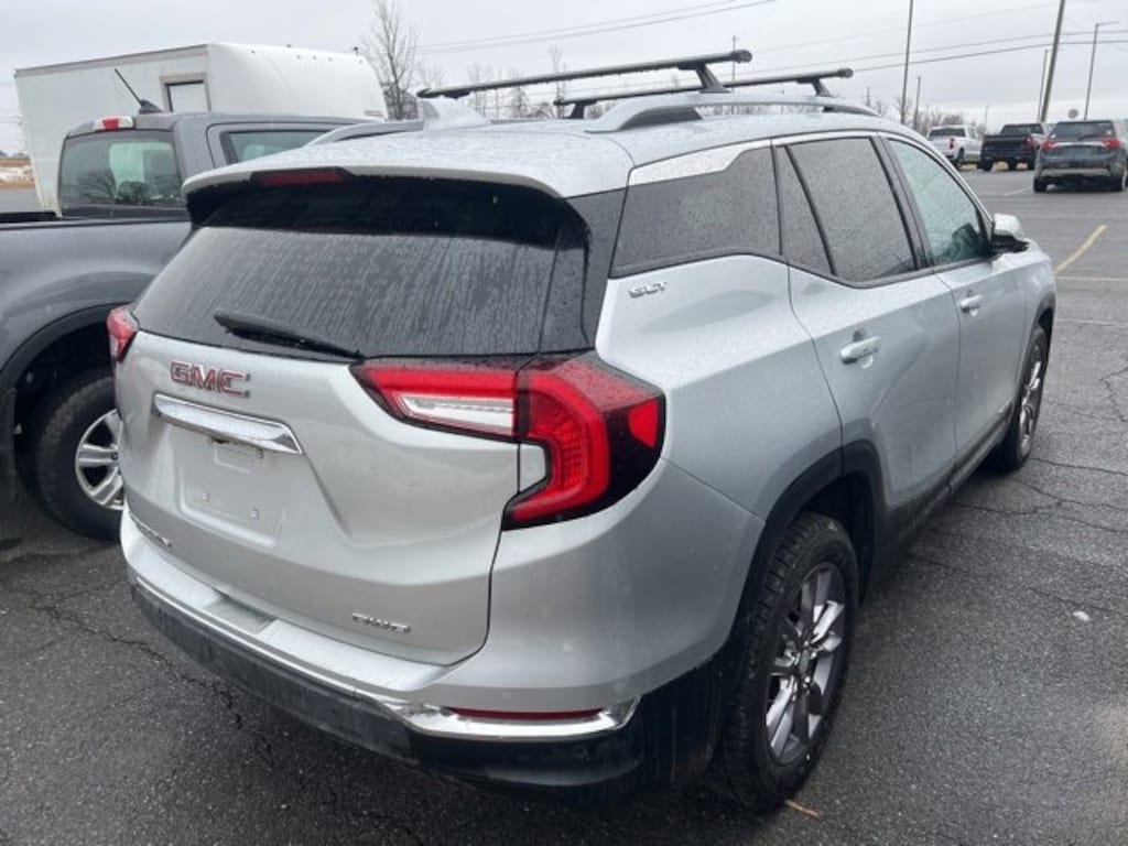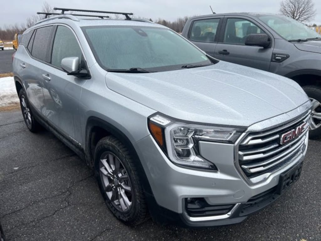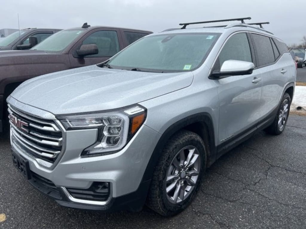 2022 GMC Terrain SLT, AWD, 9-Speed Automatic, 1.5L DOHC, Quicksilver Metallic, AWD, 6-Way Power Front Passenger Seat, 8-Way Power Driver Seat Adjuster, ABS brakes, Adaptive Cruise Control, Alloy wheels, AM/FM radio: SiriusXM, Bluetooth® For Phone, Electronic Stability Control, Front & Rear Park Assist, Front dual zone A/C, GMC Pro Safety Plus, HD Surround Vision, Head-Up Display, Heated door mirrors, Heated front seats, Heated steering wheel, Lane Change Alert w/Side Blind Zone Alert, Lane Departure Warning System, Perforated Leather-Appointed Seat Trim, Power Liftgate, Power windows, Preferred Equipment Group 4SA, Radio: GMC Infotainment Audio System w/8 Display, Remote keyless entry, Roof rack: rails only, Skyscape Power Sunroof w/Power Sunscreen, Steering wheel mounted audio controls, Tech Package, Wireless Apple CarPlay/Wireless Android Auto. Clean CARFAX.