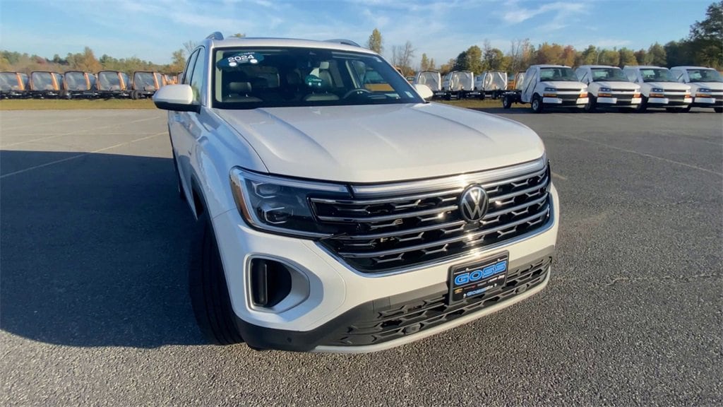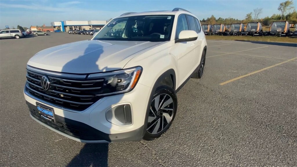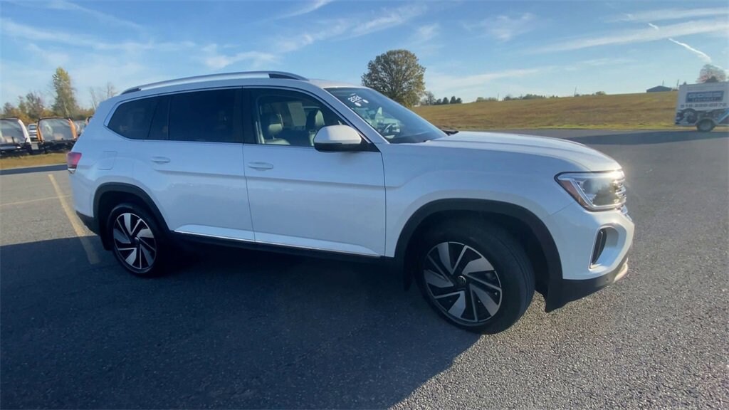 2024 Volkswagen Atlas 2.0T SEL, AWD, 8-Speed Automatic with Tiptronic, 2.0L TSI, Opal White, 3rd row seats: split-bench, ABS brakes, Adventure Package (Bumperdillo Chrome), Alloy wheels, AM/FM radio: SiriusXM with 360L, Chrome Bumperdillo Rear Bumper Protection Plate, Electronic Stability Control, Exterior Parking Camera Rear, Front dual zone A/C, Heads-Up Display, Heated front seats, Heated rear seats, Heated steering wheel, Luggage Net, Perforated Vienna Leather Seating Surfaces, Power driver seat, Power Liftgate, Power moonroof: Panoramic, Power passenger seat, Power windows, Radio: MIB3 Discover Media w/Navigation, Rear air conditioning, Remote keyless entry, Speed control, Steering wheel mounted audio controls, Ventilated front seats. CARFAX One-Owner. Clean CARFAX.